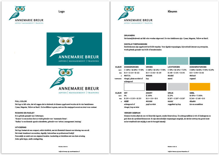 Ontwikkeling, kleur, vorm, typografie en toepassingen van de huisstijl compleet beschreven |